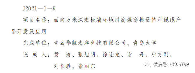 12月8日上午,青島市科技創(chuàng)新大會在市級機關(guān)會議中心召開,對獲得2021年度市科學(xué)技術(shù)獎的項目和人員進行表彰獎勵。青島華凱海洋科技有限公司“面向萬米深海極端環(huán)境用高強高模量特種繩纜產(chǎn)品開發(fā)及應(yīng)用”項目榮獲青島市科學(xué)技術(shù)進步一等獎。